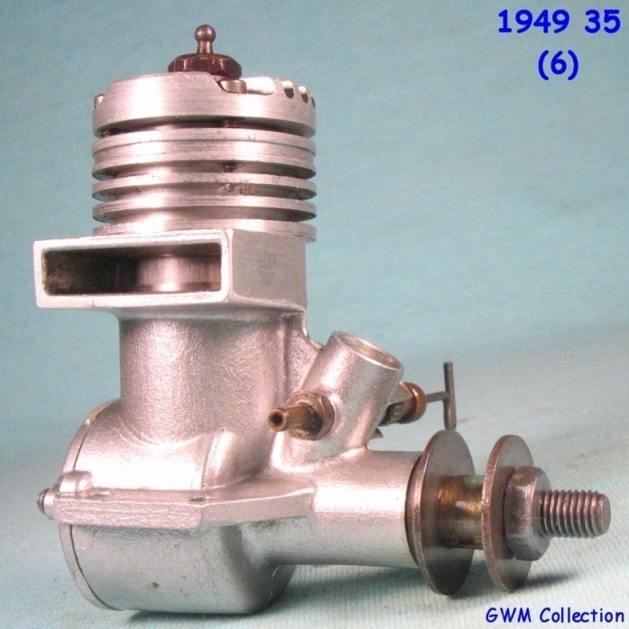 The .35, .800 x .700 B/S, was very successful and in late 1949 1950 a 29 was marketed. This was a .35 with a .smaller bore, 738 x .700 B/S. A 29 Racing Special was sold in 1950 (8) that was a 29 with handwork of the crankshaft, case, liner porting, and a meehanite crankshaft bushing. Externally, the engine has 29R stamped on the front of the exhaust stack. |